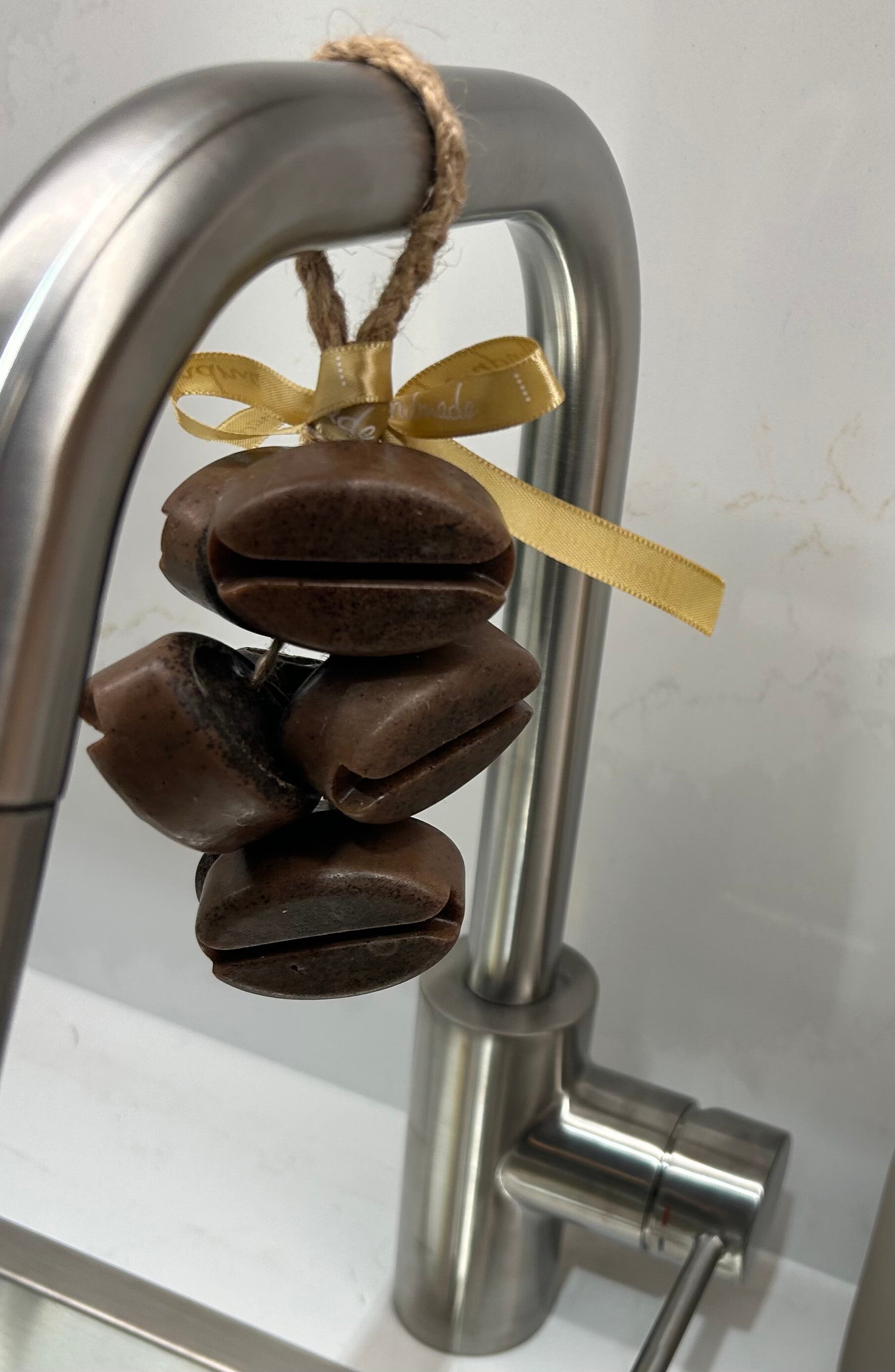 • Form: Detailgetreue Kaffeebohnen, zu einem dekorativen Bündel arrangiert.